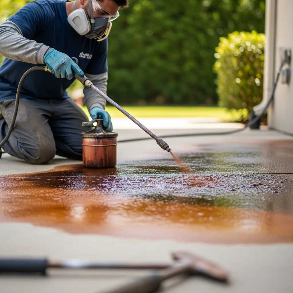 Step 3: : Stain Application– Acid or water-based stains are applied for deep, lasting color.
